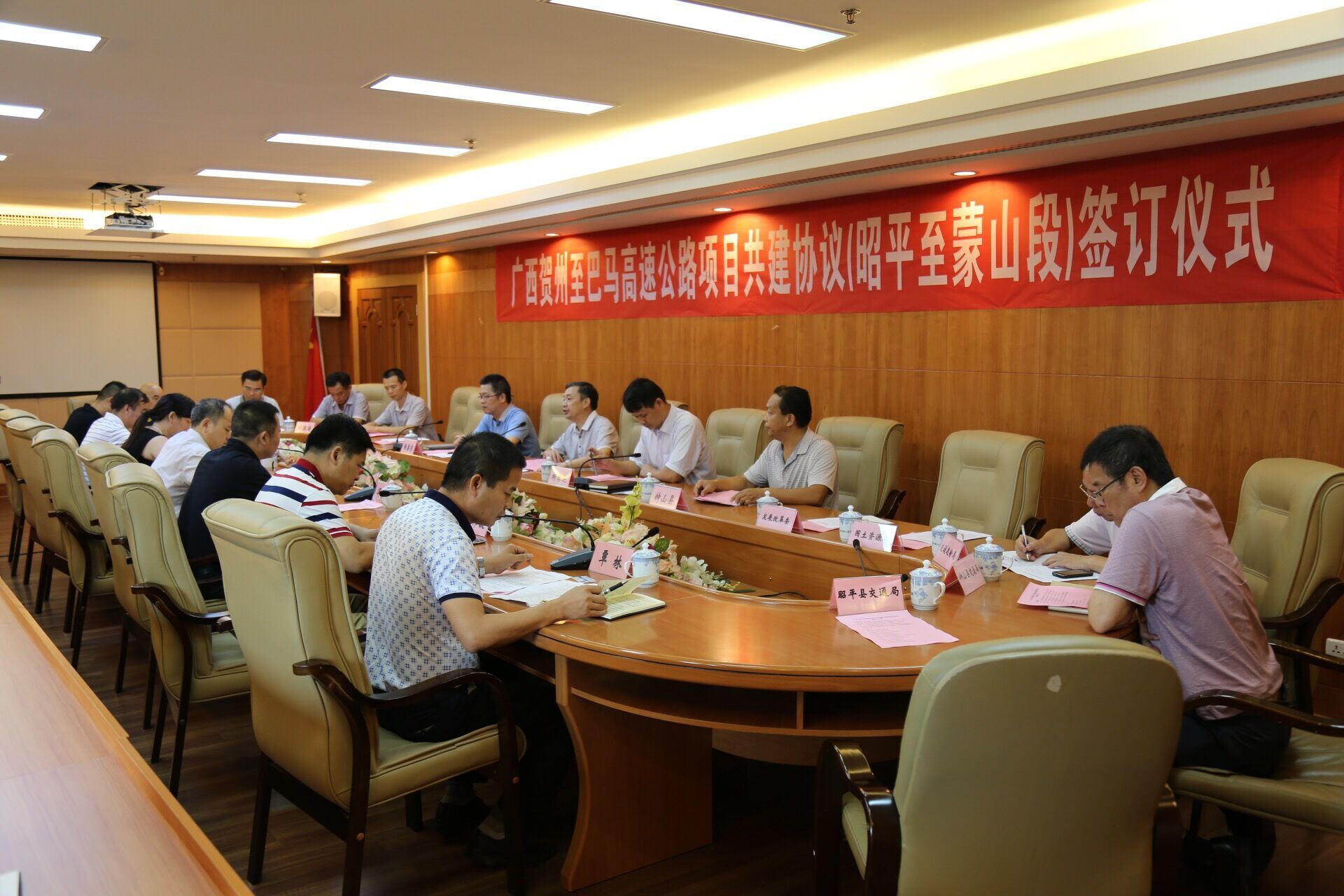 簽約儀式上,雙方就如何推動賀州至巴馬高速公路(昭平至蒙山段)項目的建設工作深入交換了意見。賀州市領導表示,市政府各相關單位和部門會保持積極主動的工作狀態,全力以赴,克服種種困難,同時加強與集團公司、新恒通公司的溝通交流,做好項目的征地拆遷和建設中各項協調工作。集團公司領導對賀州市政府的支持與配合表示感謝,同時表示集團公司將秉承建設綠色生態高速公路的理念,優質高效的完成該項目的投資建設。