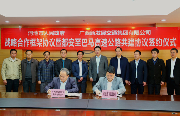 12月16日上午,集團公司與河池市人民政府舉行戰(zhàn)略合作框架協(xié)議暨都安至巴馬高速公路共建協(xié)議簽約儀式。